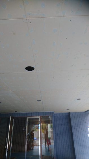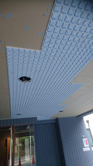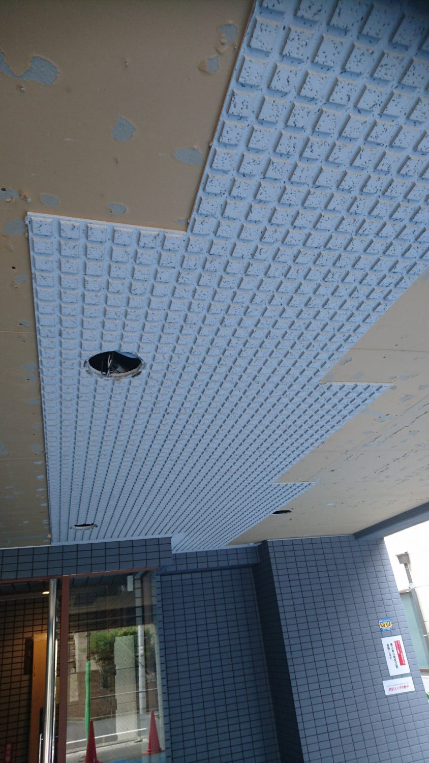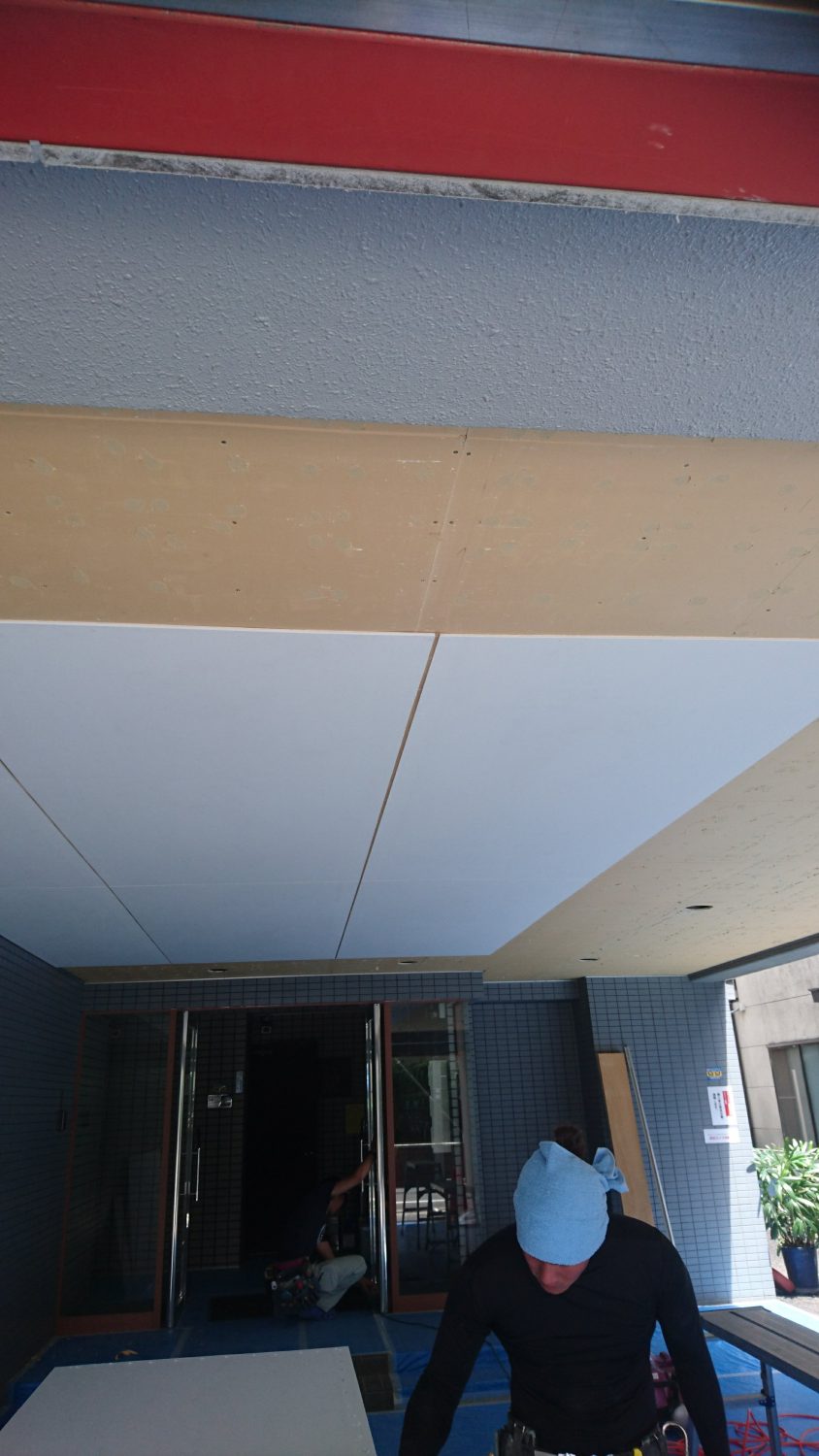 ソーラトンを剥がしてからのケイカル目透かし貼り。2日間の工事無事終了しました。