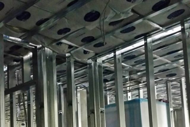 ボード工事とは、軽鉄の骨組みの上に石膏ボードを貼っていく、壁や天井の下地をつくる工事のこと。